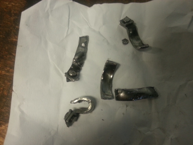 Das ist der Käfig eines größeren Kugellagers. Und damit besteht sofortiger Handlungsbedarf, der voraussichtlich auf eine Motorzerlegung hinauslaufen wird... Solange die Kugeln noch rund sind, hält auch meist das Lager. Wenn sie aber mal einen Ring spalten, dann ist der Motor möglicherweise nur noch mit großem Aufwand zu retten.