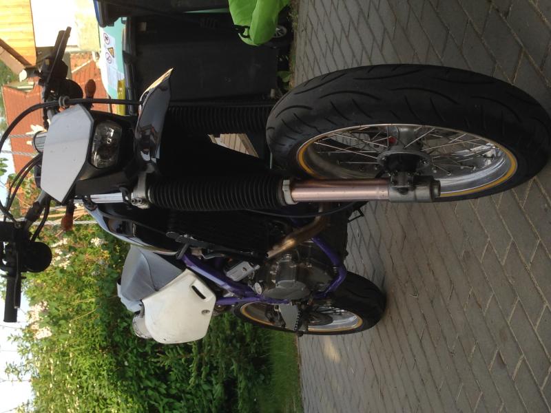 Sieht nicht schlecht aus,nur ich würde einen kleineren Frontfender(Supermoto) nehmen. Das sieht dann noch geiler aus.Also ich hatte vor der DR schon drei Supermotos und da habe ich immer den von Ufo verbaut.