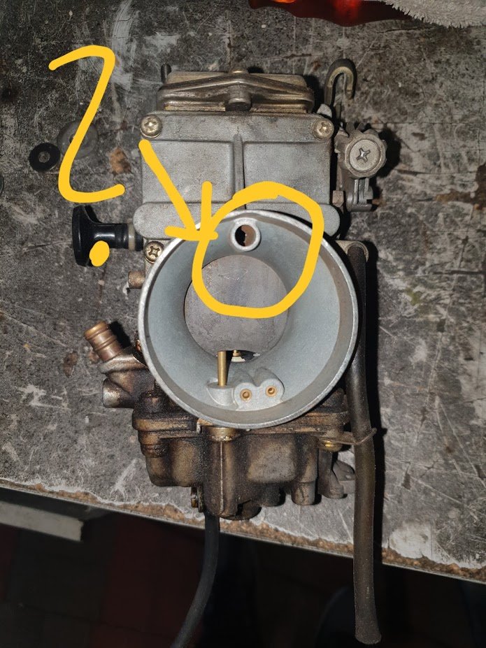 habe grade das nette Forum beim googlen gefunden. Ich habe mir in den letzten Monaten eine dr600 von 87 zusammen gebaut und bekomme sie nicht so zum laufen wie ichs gerne hätte unteren drehzahlen alles gut nur obenrum fehlt Leistung(im 5gang langsamer wie im 4ten). Da habe ich grade hier im Forum gelesen das die Bohrung Luftfilter Seite ob zu sein soll. Habe gleich mal bei den ganzen Fotos die ich beim zerlegen gemacht habe nachgeschaut und das gefunden.
