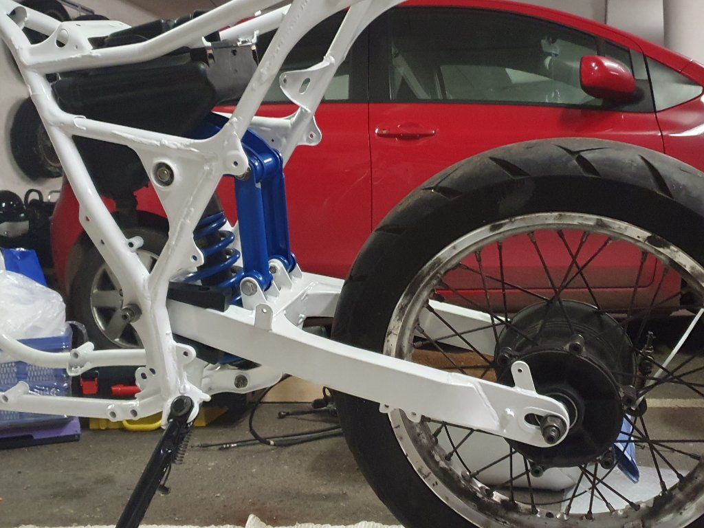 Momentan bau ich mir meine 500er die ich von meinem Taufpaten vererbt bekommen habe, wieder auf. Rahmen und klein teile Pulvern lassen, Verkleidung und Tank neu lackiert, und Motortausch, da der alte eine abgeriebene Antriebswelle hatte. Momentan warte ich noch auf meinen Sitz vom Sattler und der Verkleidung samt Tank.