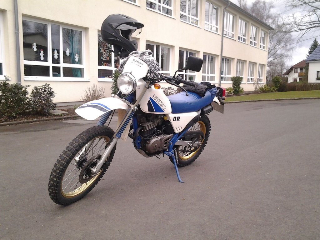Erstmal 'Hei' in die Runde, ich will mich kurz vorstellen: ich bin 47J, komme aus dem Lk Barnim und nenne seit einiger Zeit ne 250er DR aus '84 mein Eigen. Ich hatte auch ne zeitlang eine DR 650, aber auf die Dauer hatte ich keine Lust mehr auf die Rumkletterei zum Anmachen, jetzt steht statt dessen eine Transe mit Knöpfchen da, eben altersgerecht. Die kleene DR ist da nat. viel umgänglicher, nur sind für die kaum Teile zu bekommen, darum meine Frage in die Runde: hat jemand noch was Brauchbares für die Halbstarke rumliegen? Speziell gehts mir um die Auspuffanlage und den Kabelbaum, aber auch andere Teile sind immer interressant.
