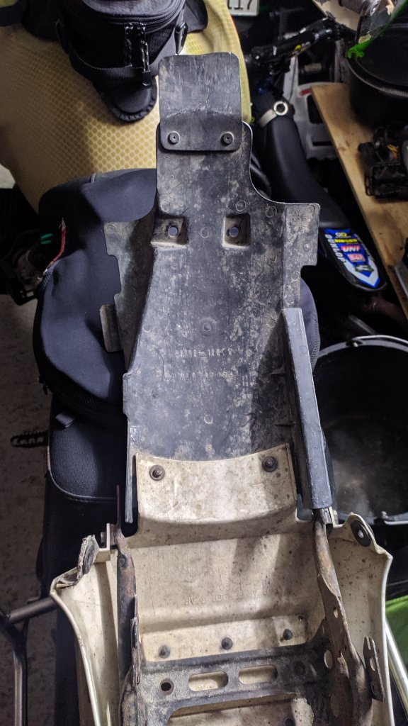 Sollte der komplett fehlen, dann ist der, je nach Sichtweise, kurz genug oder zu kurz. Bei zu kurz, war bei mir so, kann man sich was basteln oder bei Acerbis im Regal wühlen. Die haben so etwas. Mit der großen Schere anpassen und mit drei extrabreiten Popnieten befestigen. Fertig.