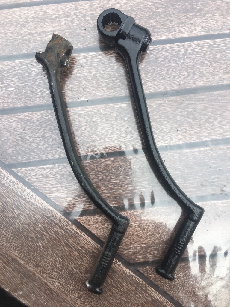 An dem verbauten Kicker hat sich der schwenkbare Teil vom Rest gelöst und das Ankicken geht damit gar nicht mehr. (Da hat wohl ein Vorbesitzer schon einiges mittels Schweißen versucht…)