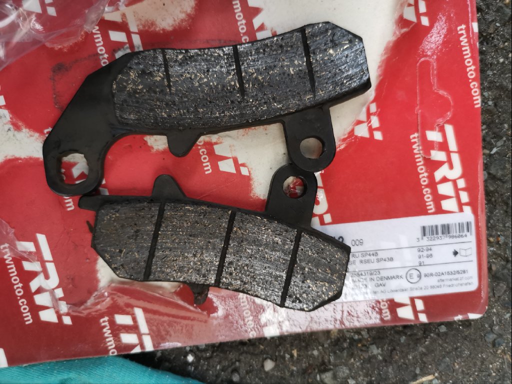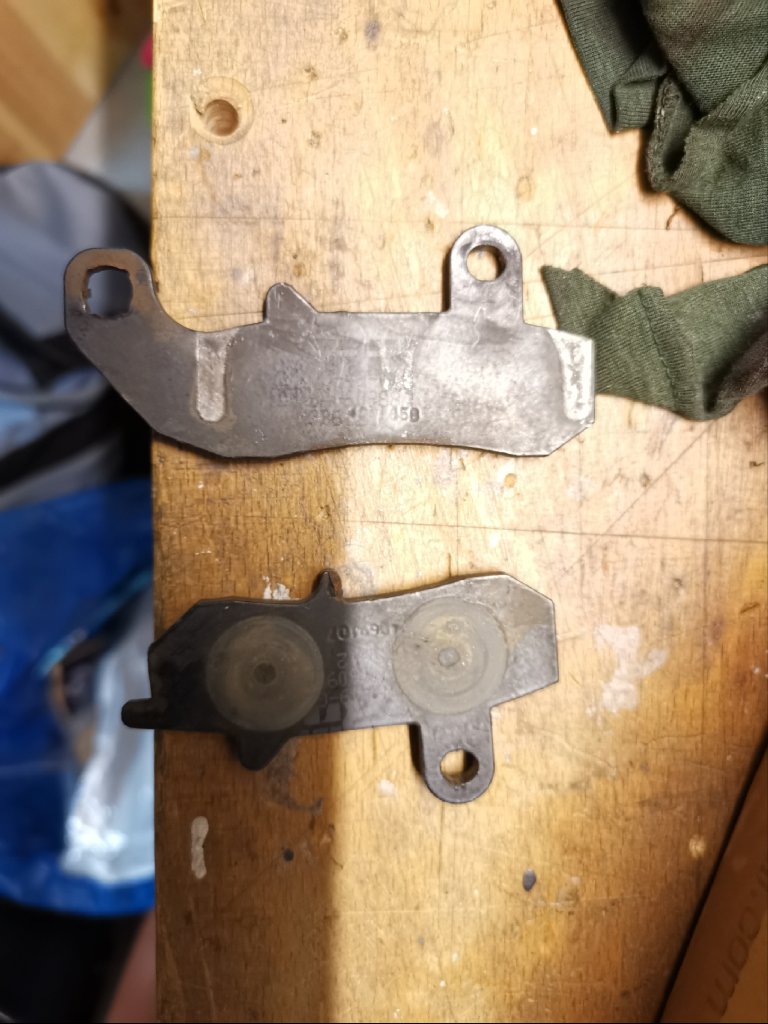 erstmal vielen Dank für die ersten Einschätzungen. Und hier ein Bild von der Rückseite der Beläge. Die Bolzen sehen in der Tat etwas merkwürdig aus.