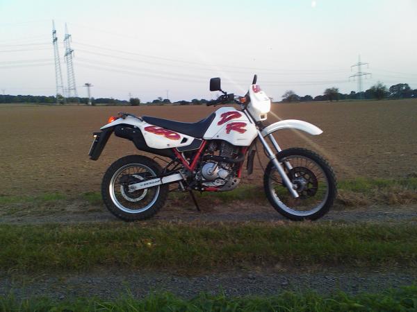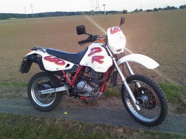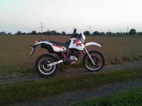 hier ist meine originale DR 650 R! Die hat die letzten 9 Jahre beim Vorbsitzer im Hühnerstall verbracht, der hat sie dann für 50 euro verkauft---an mich! ;-P