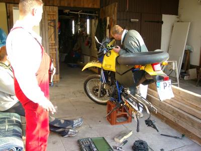 und eine SP44B Bj.93-schwarz-mit Öhlins Federbein, orig.Endtopf (noch),Supermoto-Kotflügel,polierter Unterfahrschutz und sonst sääähr gepflegt.