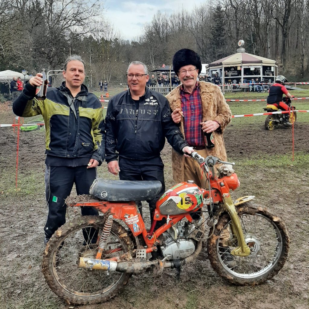 Einer ist gleich abgeflogen...kalte Reifen vom Stehen, kalte Straße weil noch Winter und viel Elektronik am Bike auf das man sich verlässt.