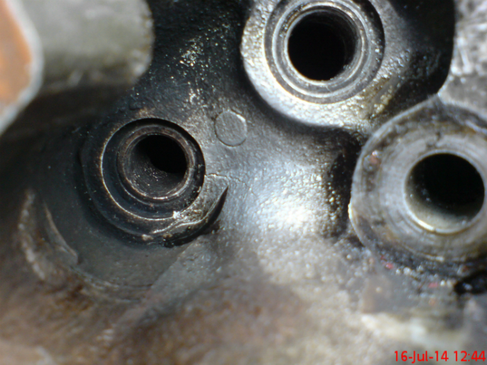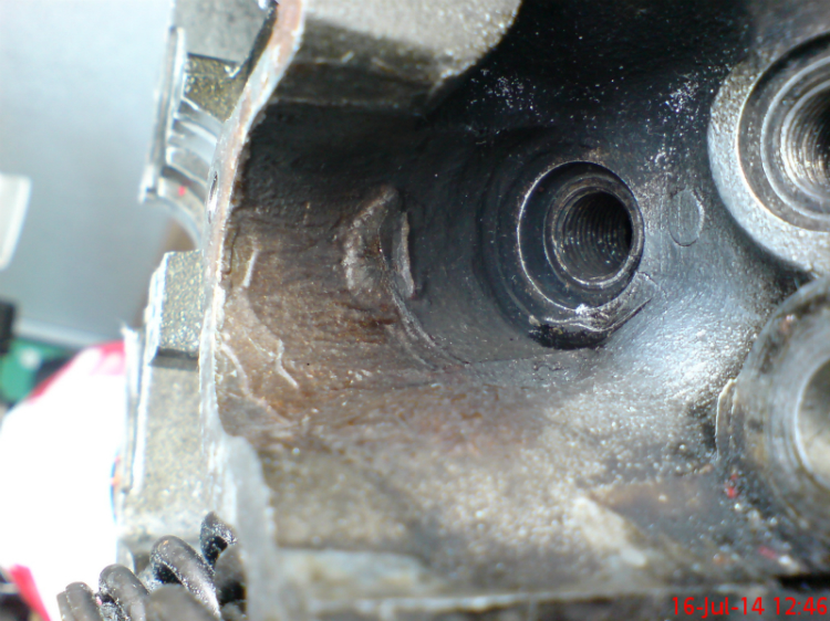 In der Tat hat der Riss im Zylinderkopf mit dem von Dir gezeigten Loch rein garnix zu tun.