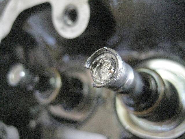 Erstaunlich ist auch dass das Einlaßventil mehr als das Auslassventil abbekommen hat. Normalerweise ist es anders herum.