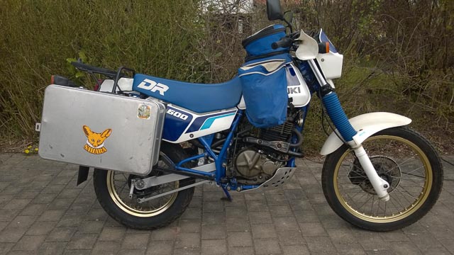 Bin jetzt 50 geworden und hatte mir vorgenommen meine von mir 1989 neu gekaufte DR 600, lange Jahr eingemottet, wieder einzusetzen. Habe lange mit mir gerungen etwas neues zu kaufen (BMW 800 GS oder KTM 690), aber das Motorrad war ja immer gut und zuverlässig. Außerdem hat sie erst 21.000 km gelaufen, Motor läuft gut ohne Probleme, Flachschiebervergaser installiert, Wilders Federn...