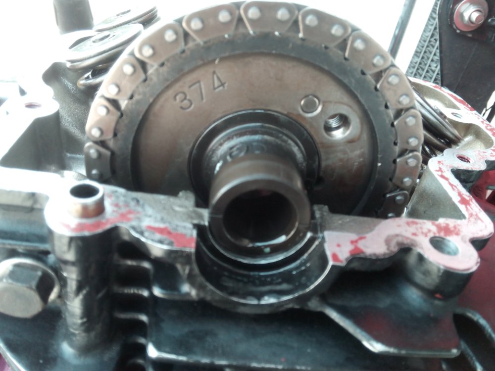 - sodann wird über das noch lose Zahnrad die Steuerkette gelegt