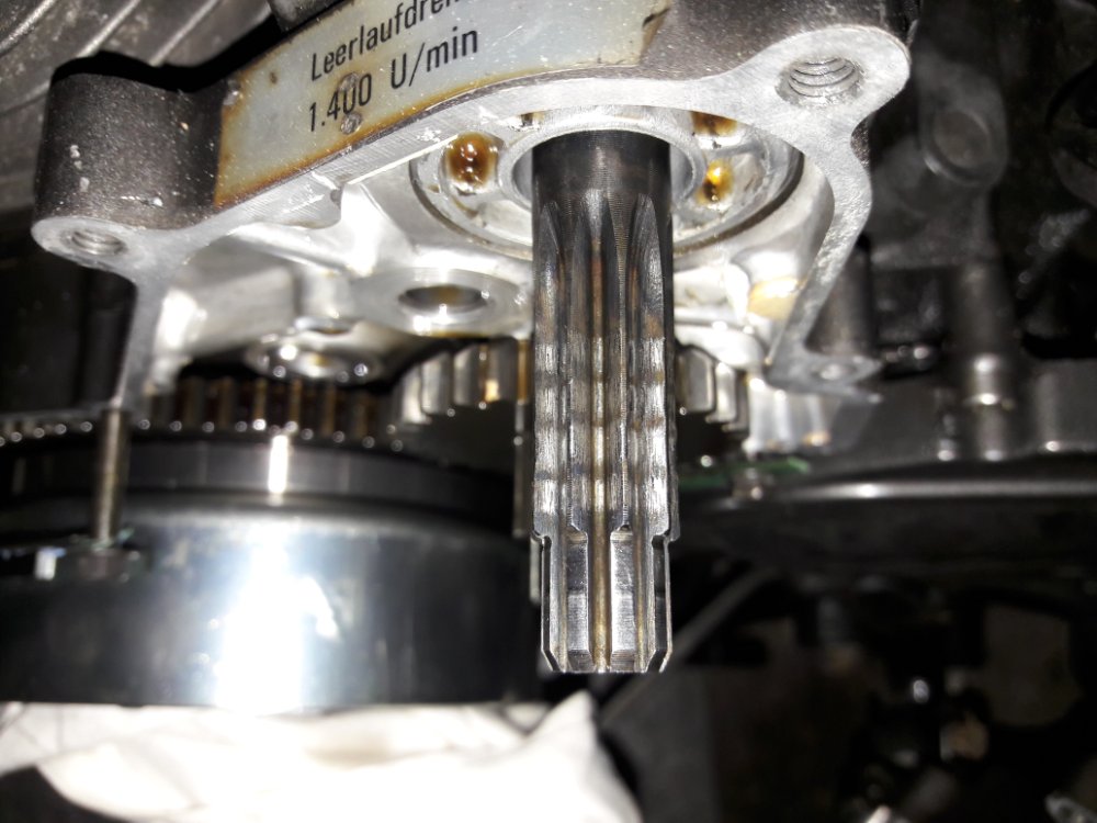 Wenn sich dieses Zahnrad zu den anderen verdreht hat kanns natürlich auch sein dass die Gegenwelle Stück für Stück die Zähne abgefressen hat. Aber auch das dürfte nicht Spurlos an der Analsserwelle vorrübergehen und so schlimm schaut die gar net aus an der Stelle.
