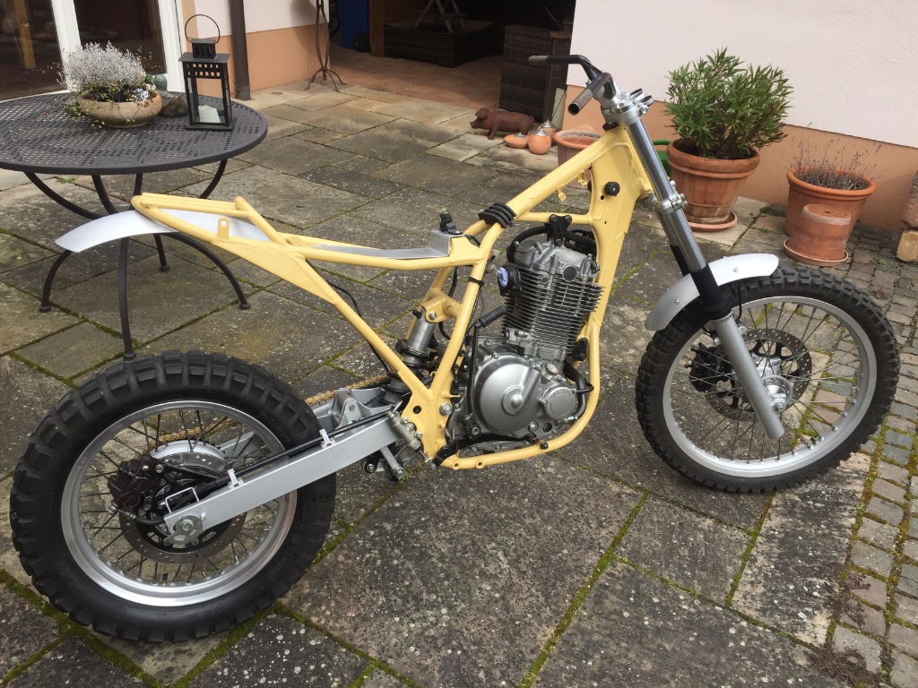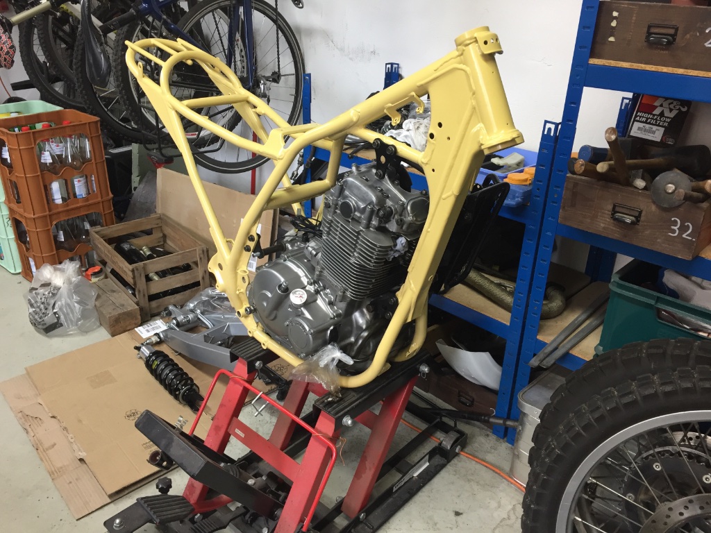 Wie gesagt war der Rahmen beim Pulvern und kam Mitte März zurück. Damit konnte der Aufbau starten.
