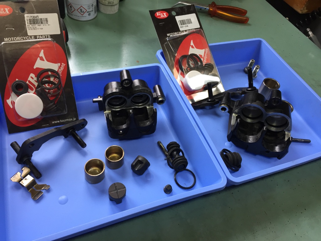 Beim Zusammenbau habe ich dann auch gleich die Dichtungen der Bremszangen ausgetauscht. Nach fast 25 Jahren hat sich das echt gelohnt!! Die alten Dichtungen waren mürbe und nach dem Erneuern sind die Bremszylinder deutlich leichtgängiger.