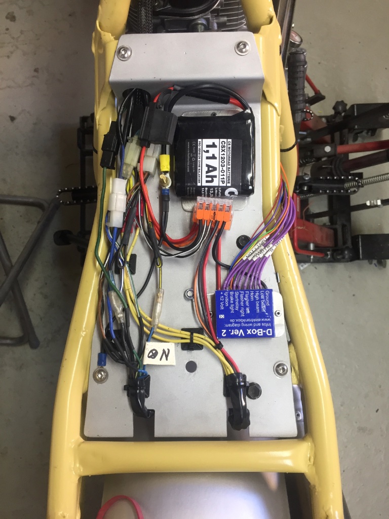 Aktuell ist die Elektrik dran ... Das ein ein ganz schönes gefummel, alles unter die Sitzbank zu bekommen. Aber ich bin guter Dinge. Das wichtigste ist gemacht. Es fehlt noch die Tastersteuerung und die Verkabelung im Lenker.