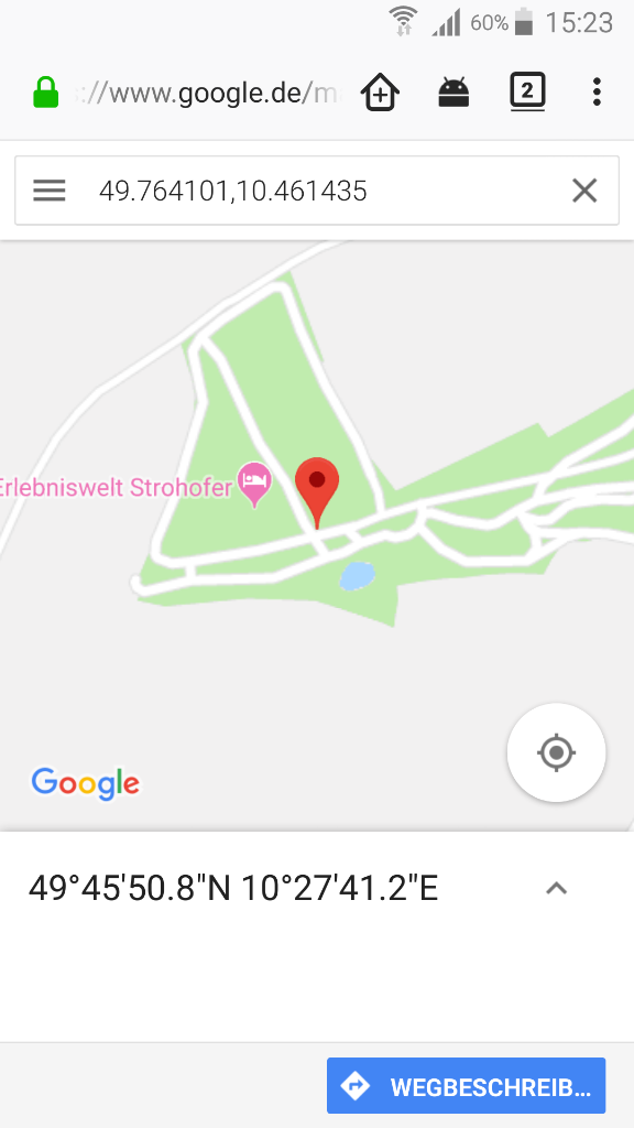 dort die Koordinaten (49.764101,10.461435) eingeben.