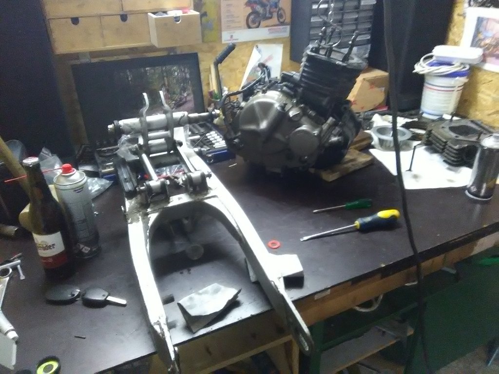 Ich habe alles für den Tüv fertig gemacht, netterweise habe ich ihn wirklich bekommen, obwohl zb die untere Schaube vom Federbein fehlte und die Umlenkungslager ausgeschlagen waren. Und mit der Frage was ich den mit dem Motorrad vor hätte?! Nächsten Tag gleich zur Anmeldung hin. Seit dem nur Schrauberei.