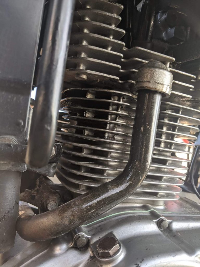 Nachdem ich sie für einige Stunden im Straßenverkehr bewegt habe und sie in die Garage stellte, ist mir das aufgefallen (siehe Bild). Nun dachte ich, dass die Dichtringe meiner Ölleitung versagt hätten, deswegen habe ich diese durch neue ersetzt und die Ölleitung wieder draufgesetzt. Kurze Runde gedreht - leider verliert Sie immer noch ein wenig Öl. Fahrtechnisch kann man nichts bemängeln, sie läuft nicht unruhig oder dergleichen, nimmt das Gas gut an und bremst, wenn sie soll. Anspringen tut sie gut.