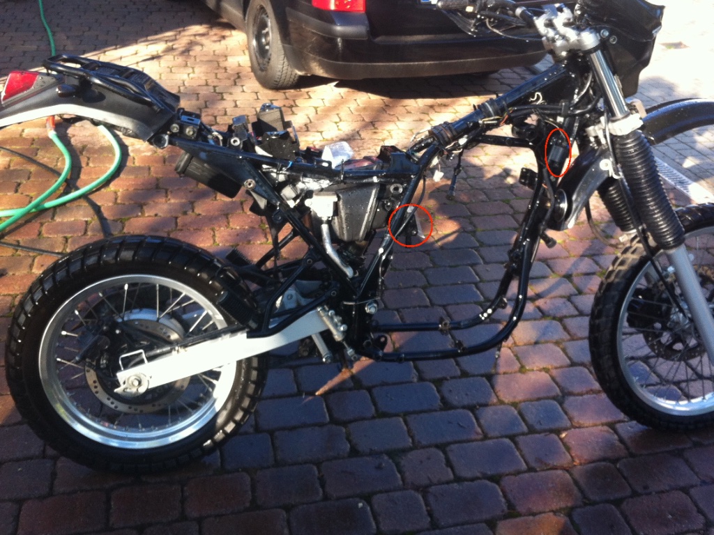 Auf der anderes Seite werden Dir noch die Befestigungspunkte des Anlasserrelais fehlen. Die SP45 hat auch einene größere Batterie, somit auch einen anderen "Batteriekorb".