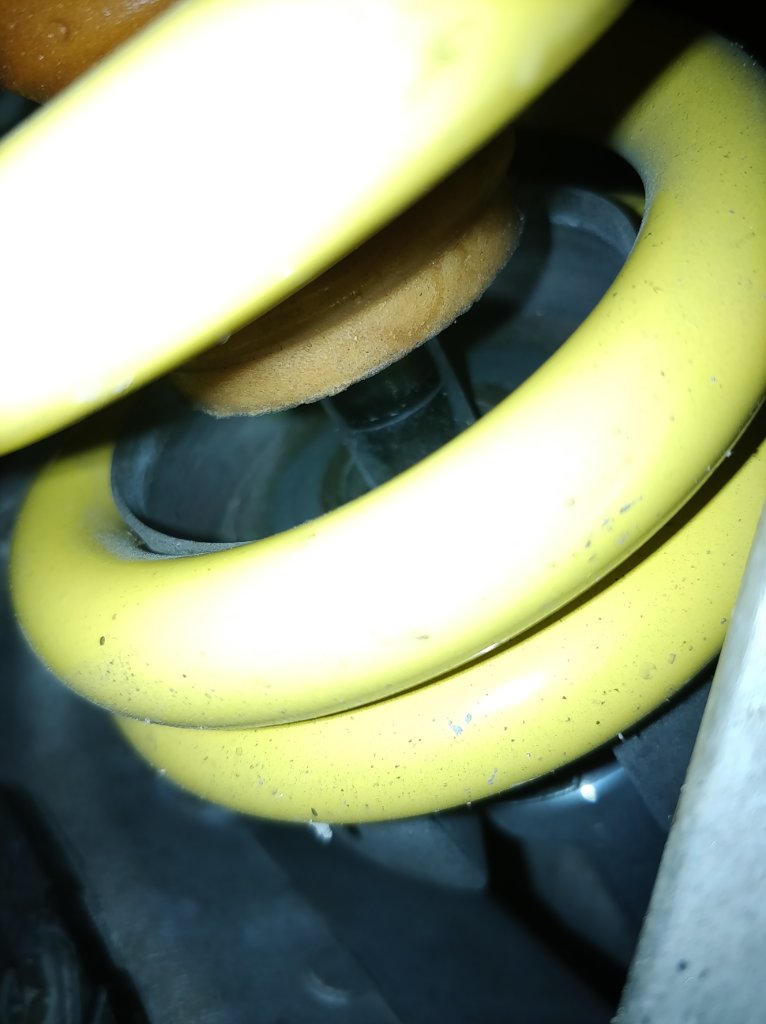 Bevor ich den Gummi herunter gedrückt habe, habe ich einen kleinen Tropfen Sekundenkleber an der Dämpferstange angebracht.Dadurch rutscht der Gummi nicht wieder hoch. Bei meiner SE hatte ich später den Ring weggeschnitten