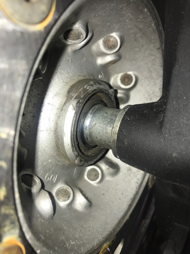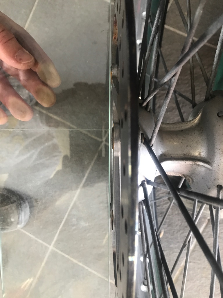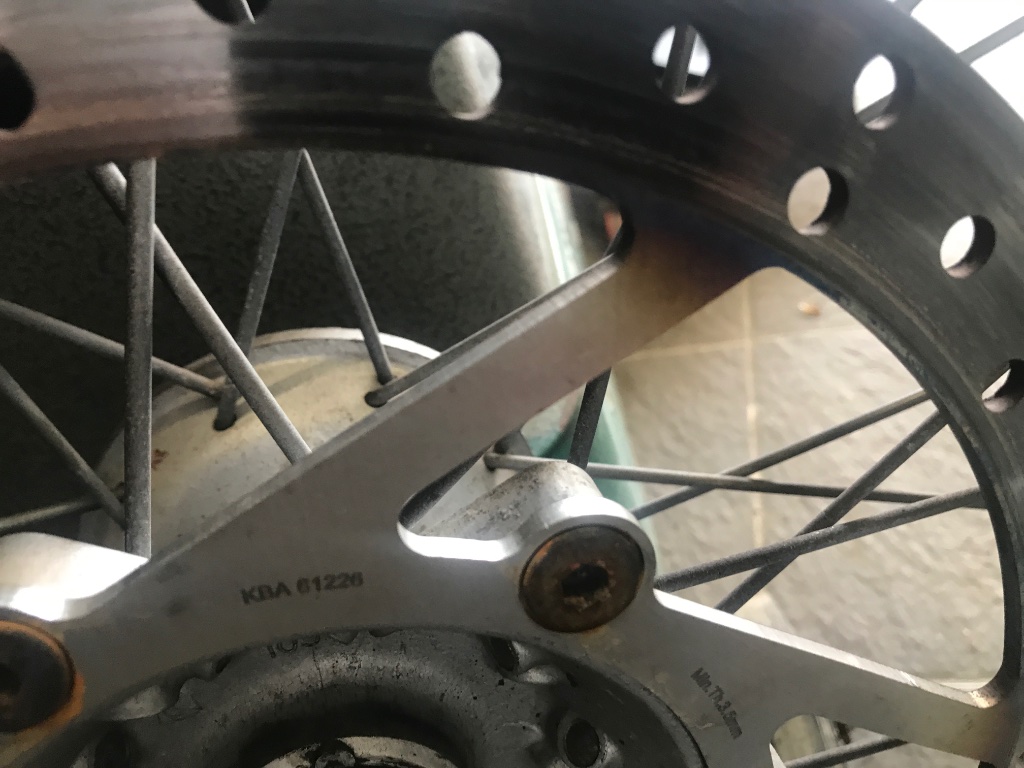 Wenn man von oben auf die Scheibe schaut, wird diese beim Bremsen leicht nach außen gebogen so dass da etwas nicht ganz fluchtet. Hab’s Rad losgeschraubt und wieder mit Drehmoment angezogen, hat aber kaum geholfen. Wenn ich den Bremssattel in der Hand habe, finde ich, dass der Sattel sich leicht verschieben lässt, aber ich hab da keine Referenz, da ich die Kiste erst seit ein paar Wochen habe und genau einmal gefahren bin. Da ist soviel verbastelt, dass ich jetzt auf Nummer sicher gehe. Hab soviel Zeit einfach nicht.