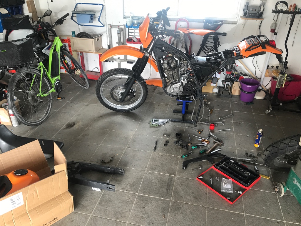 Das wird noch ne spannende Reise mit der Kiste. Lenkkopflager ist auch zu stramm, mal schauen was da noch rauskommt.