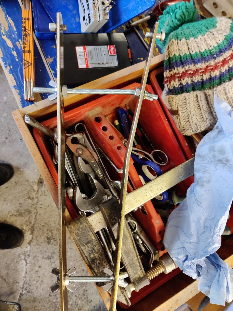 Die Verlängerung biegt sich schon durch, ist auch suboptimal mit der Wagenheberstange (die Rote).