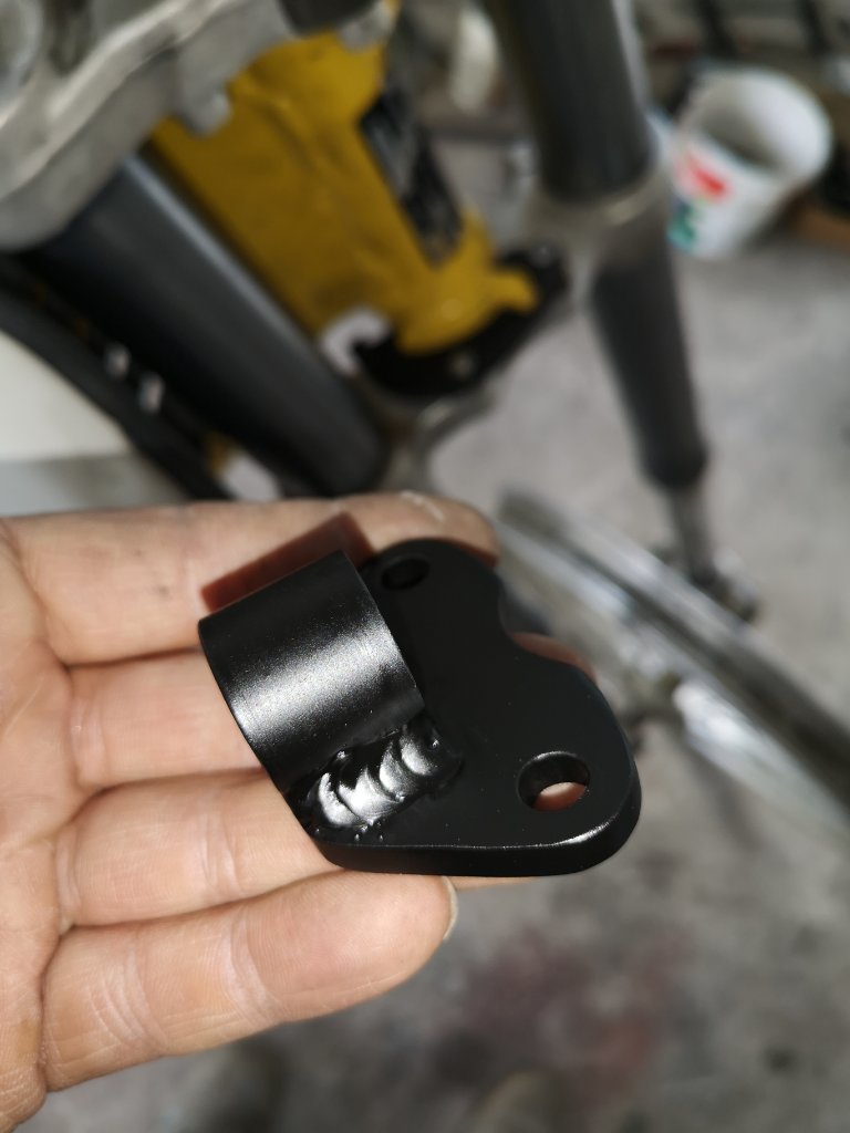 Die Scheinwerhalter sind etwas an die neue Gabel angepasst.