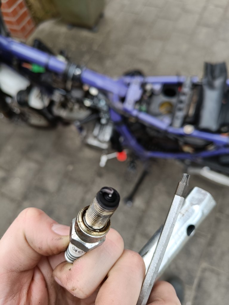 So hab ich das bei meiner Dicken auch gemacht, Kerzenbild hatte ich ja letzt hier eingestellt.Claus hat geschrieben: 12 Dez 2019 22:24 Stefan: Motor halbwegs warm fahren (nicht bolzheiß, 3km mit gemäßigtem Tempo reichen völlig). Im Leerlauf tuckern lassen und die Gemischregulierschraube so weit rausdrehen, daß der Motor die schnellste erreichbare Leerlaufdrehzahl hat. Von da etwa 1/8 Umdrehung Richtung fett (also raus). Jetzt die Leerlaufdrehzahl mit der Leerlaufschraube so weit einregulieren, bis der Motor auf den vorschriftsmäßigen 1400 bis 1500/min läuft. Jetzt hast Du eigentlich das optimale Leerlaufgemisch.(was am Tester zu beweisen wäre: soll zwischen 2,5 und 3,5 % CO sein, Hessler sagt: so fett wie geht)
