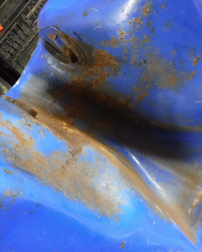 Oberflächlicher Rost an den Stellen, an denen sich zw. Tank und Rahmen Staub und anderer Feinschmutz hält welcher Feuchtigkeit zieht und speichert.