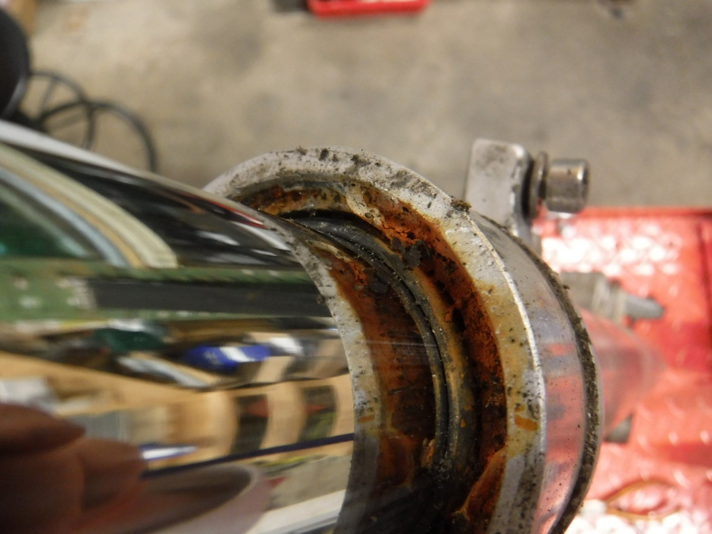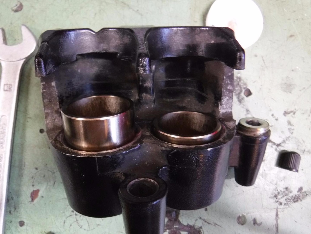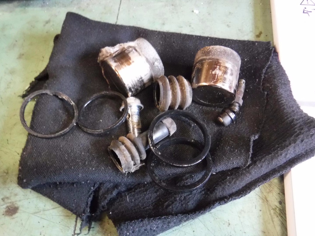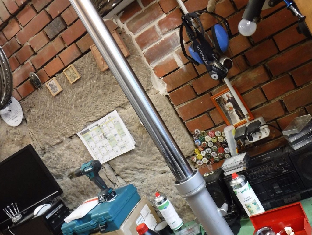 Derweil ist der 31.März 2022 und das zerlegen geht weiter denn die Gabelholme sind mehr als überholungsbedürftig. Parallel dazu bekommen die Bremssättel eine Schönheitskur. Sämtliche Dichtringe sind völlig im Eimer aber ich habe mit den Kolben Glück: Etwas polieren mit 1200er Papier und sie sehen aus wie neu. Das Ergebnis kann sich sehen lassen.