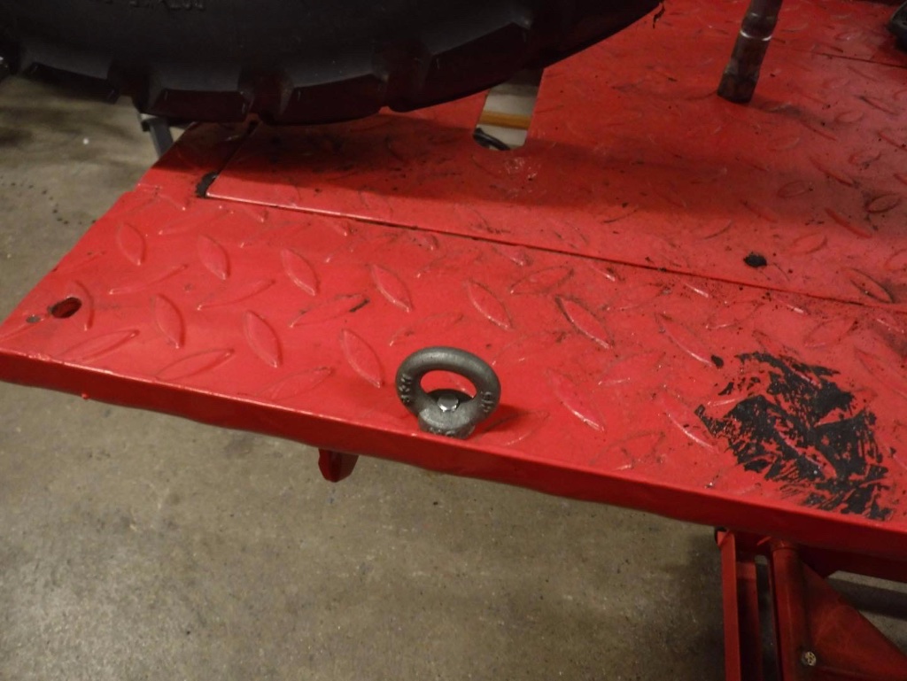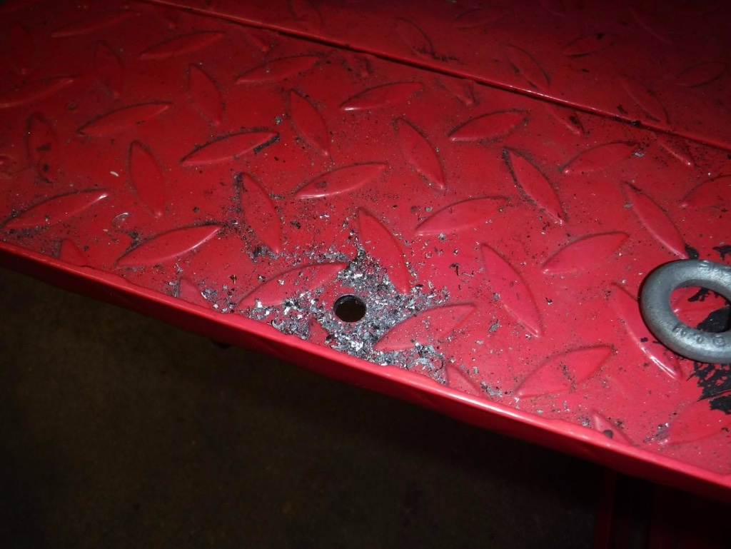 Die Gabel muss saniert werden, also muss das Vorderbeinchen hoch. Jetzt heisst es erstmal nachrüsten. Die Unterbauerei mit Wagenheber und irgendwelchen Holzklötzen habe ich schon immer gehasst. Akkubohrer raus und einmal richtig um vernünftig arbeiten zu können.