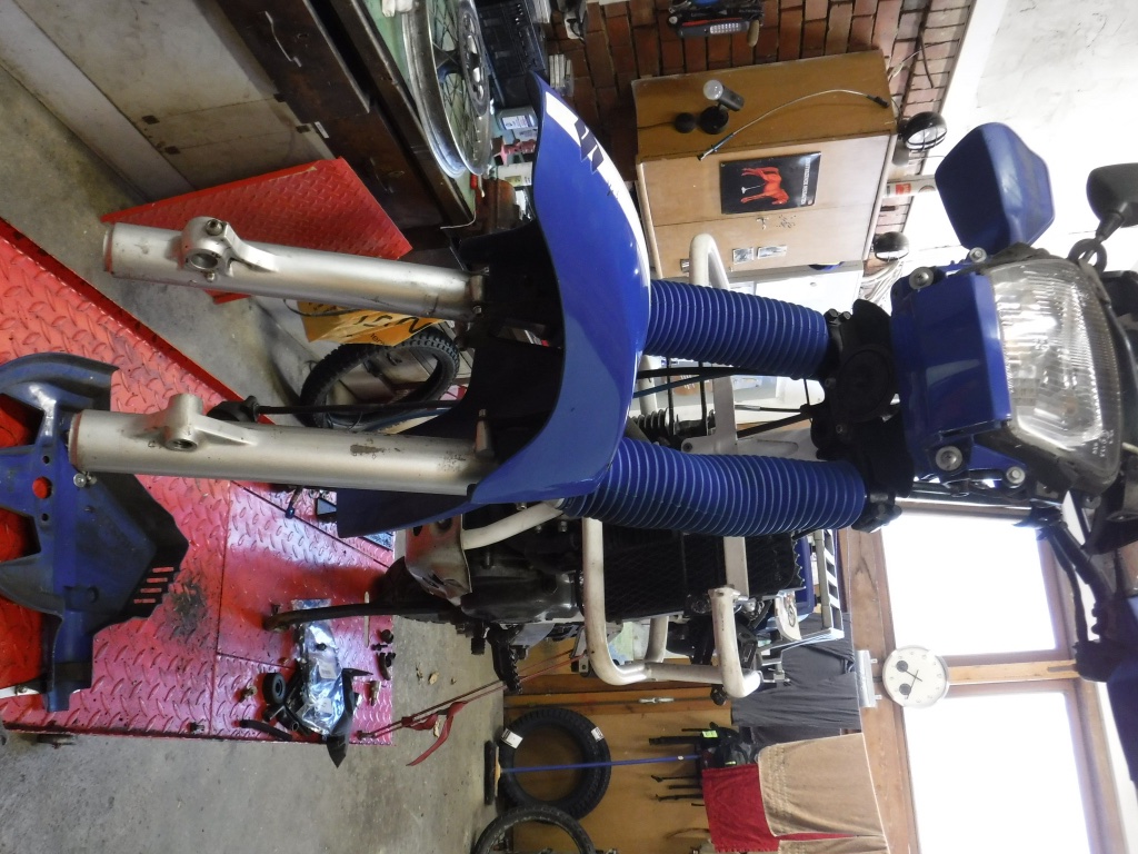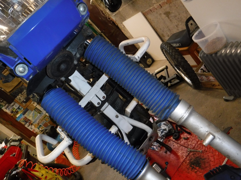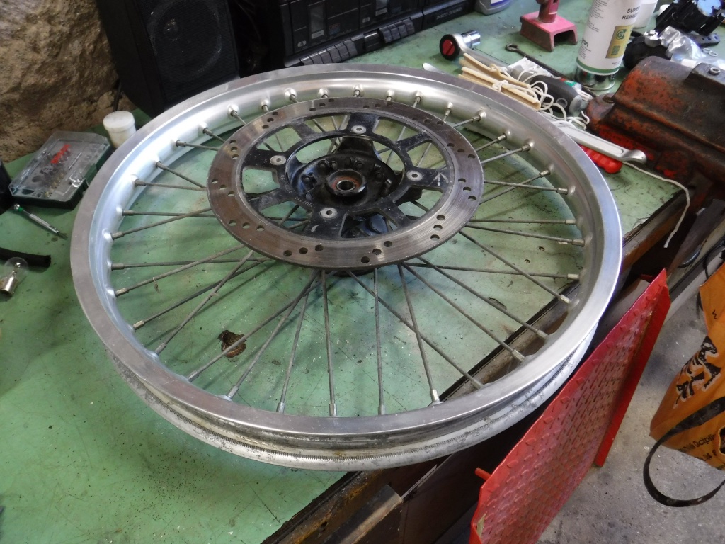 Also Gabelholme raus und zerlegen: Alles (bis auf die Gleithülsen ) einmal neu. Nebenbei die ersten Neuteile einbauen und schon mal die Reifen von den Felgen holen, da die geplanten Marokkopneus inzwischen angekommen sind. Es läuft gerade recht geschmeidig aber mittlerweile ist es der 15. April 2022, die Zeit rennt.