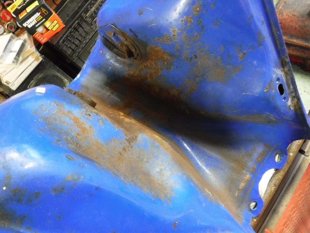 Ich drehe den Tank um und bin entsetzt: Von unten völlig verrostet. Wie ich damit umgehen soll ist mir noch unklar. Das Paradoxon: Eine Kamerafahrt in den leeren Tank ergibt: Innen völlig Rostfrei. Na immerhin.