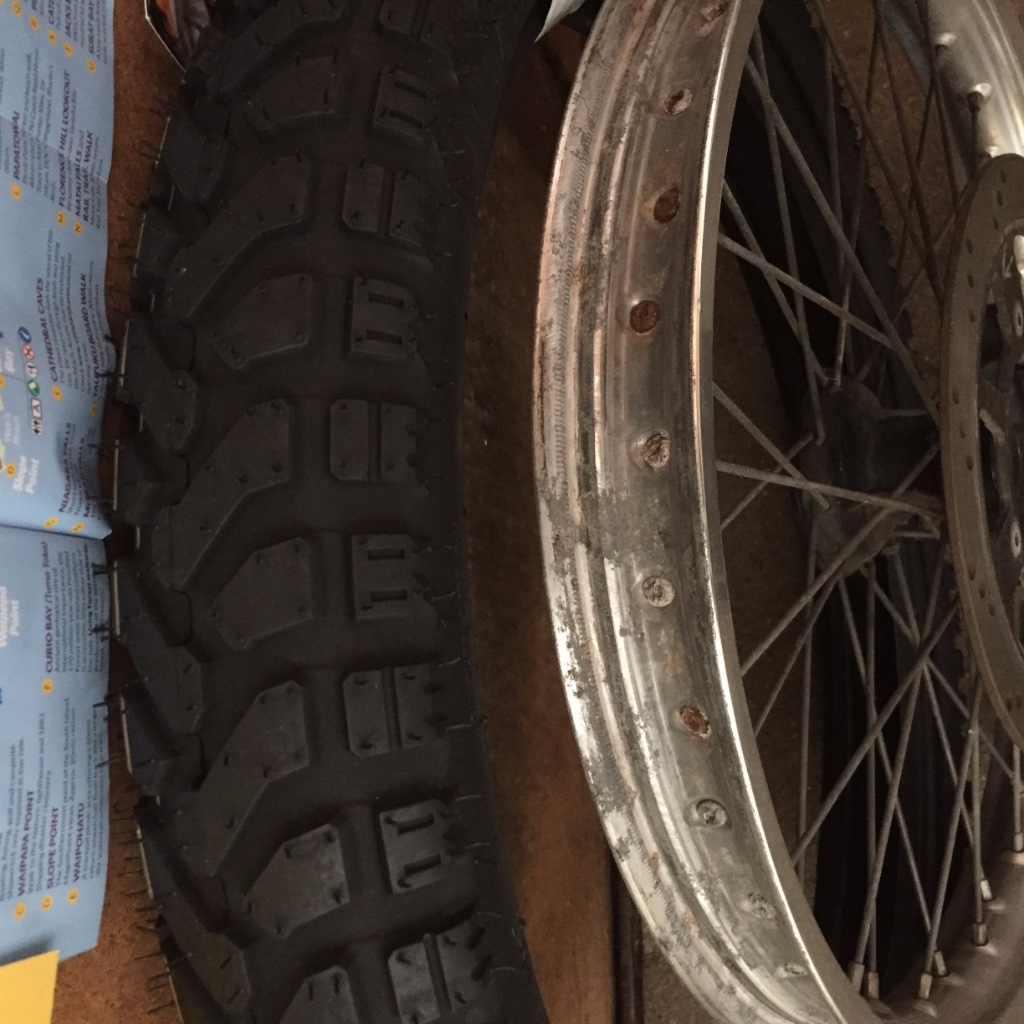 Reifen abziehen ist das eine, stocksteife Mitas aufziehen die andere. Hier brauche ich die Hilfe von meinem Freund in der Duc Werkstatt. Ich hoffe innig niemals einen Platten mit den Dingern zu haben.