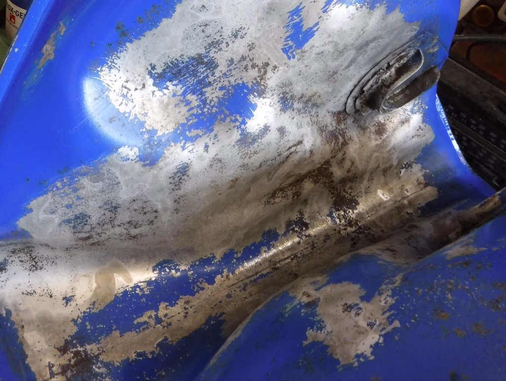 Die Gabelholme wandern langsam wieder an Ort und Stelle und neue Teile trudeln ein. Ich widme mich dem Tank und habe schon eine Idee was ich gegen die Oxidation tun kann, also ran ans Telefon und in Berlin angerufen. Hier sitzt das Korrosionschutzdepot mit Top Beratung und prima Produkten ( keine Werbung nur mehrfache gute Erfahrung).