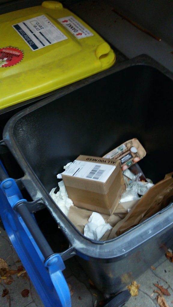 hab dhl gebeten, beim nächsten Mal vernünftig zu trennen, Metall gehört nicht ins Altpapier (:-(((