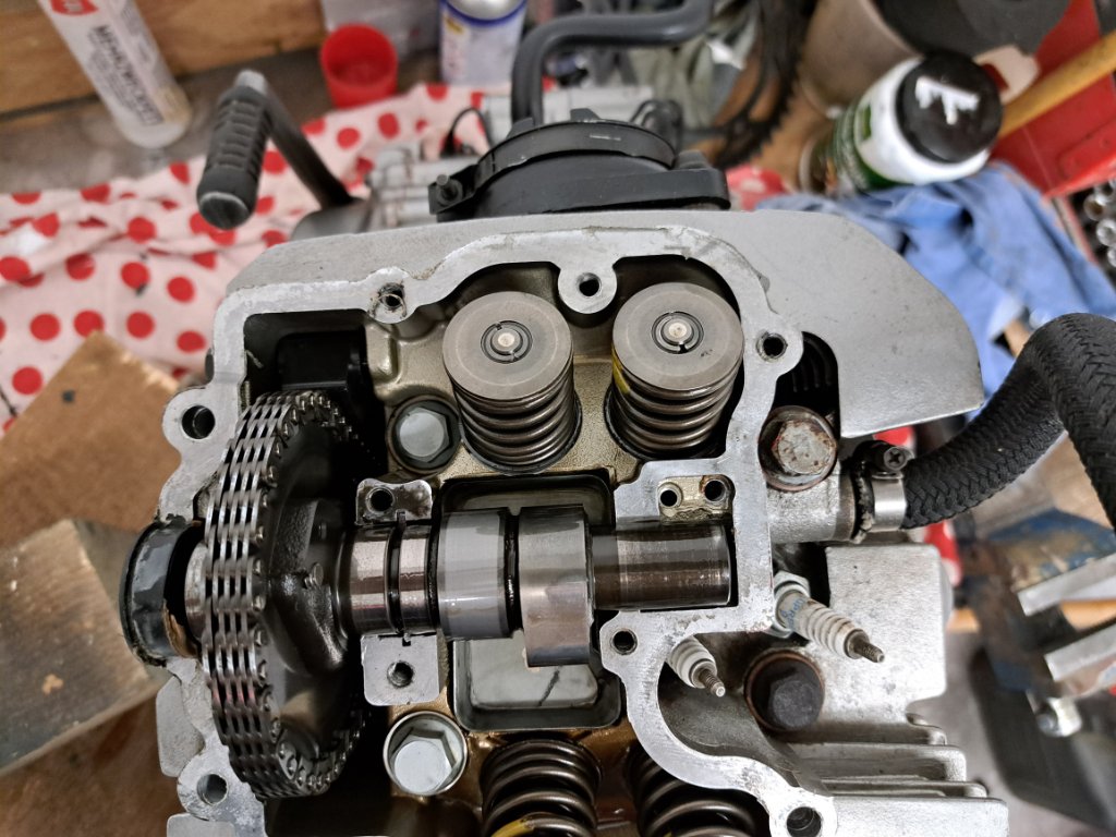 Entgegen der Befürchtung, war unter dem Ventildeckel keine Dichtmasse zu finden. Das wurde anscheinend nur von außen dick drauf geschmiert.