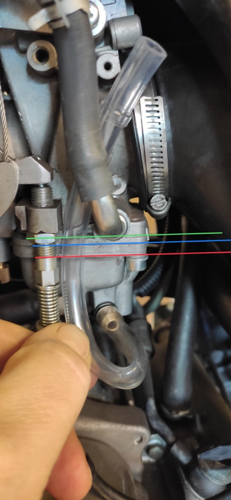 Da bei mir der Füllstand die grüne Linie ist, wird die Schwimmerkammer zu voll sein.