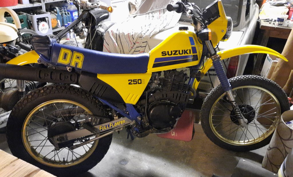Dann auch Bilder von meiner DR250. Die Idee mit dem gelb und Orange auf schwarzem Lack hatte Suzuki auch für die DR600. Die Jungs waren durchaus auch recht kreativ und geschickt bei der farblichen Gestaltung.