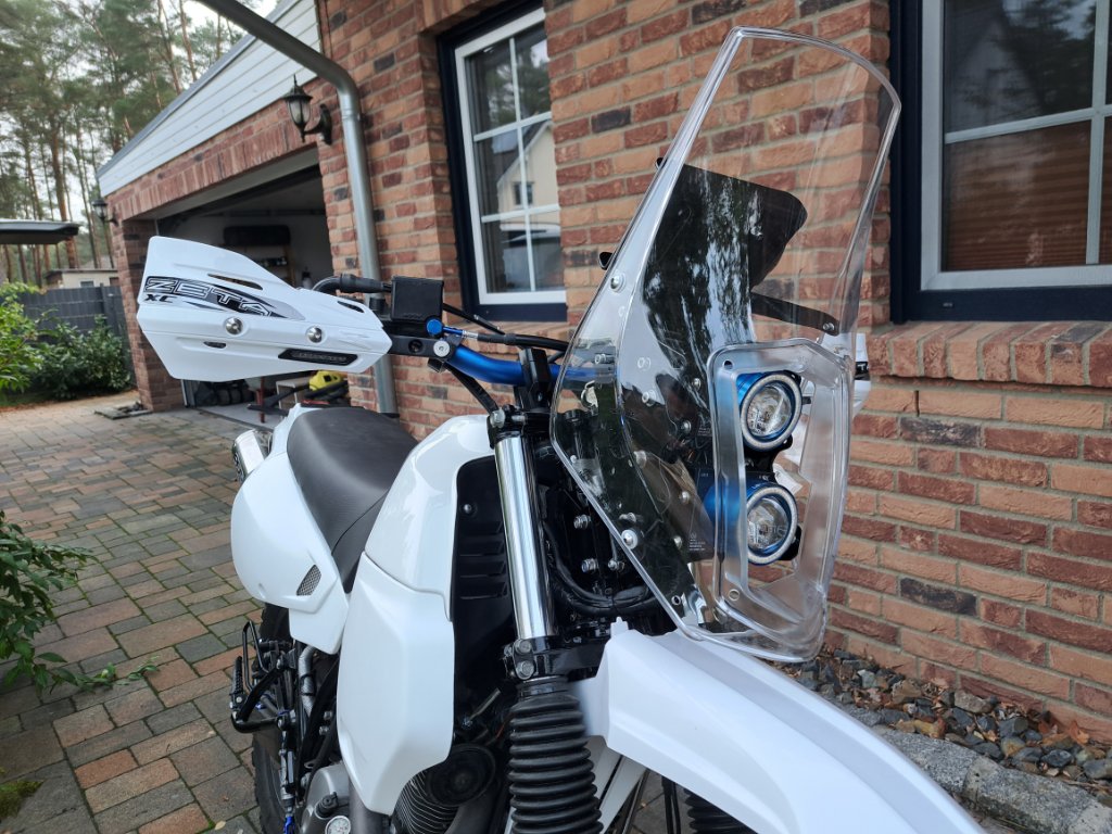 Gefällt mir alleine schon wegen deinem schönen und sauberen Aufbau sehr gut. Ganz geil mit dem Ralley Vorbau, konntest du schon mal nachts ne Runde drehen, oder jetzt schon nachmittags, um das Licht zu testen? Davon wären Bilder echt Klasse!