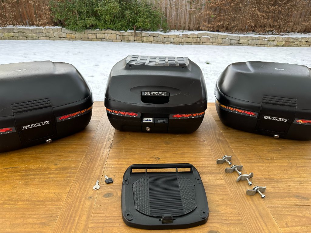 ich bin seit vergangenem Wochenende stolzer Besitzer einer SP43 aus 08/1996. Das Bike muss damals wohl eine sog. "Holiday Edition" gewesen sein, da ich es mit dem damals ab Werk inkludierten SCHUH Koffersatz mit zwei Koffern SH90 und dem Topcase SH 39 inklusive Trägerplatte und dem Kofferträger sowie zwei Schlüsseln gekauft habe.