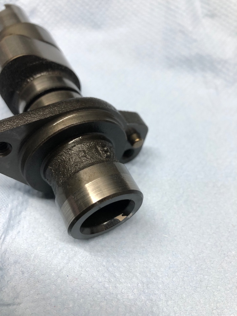 Die Nockenwelle. Spuren mit dem Fingernagel nicht spürbar. Lauffläche der Nocken tadellos.