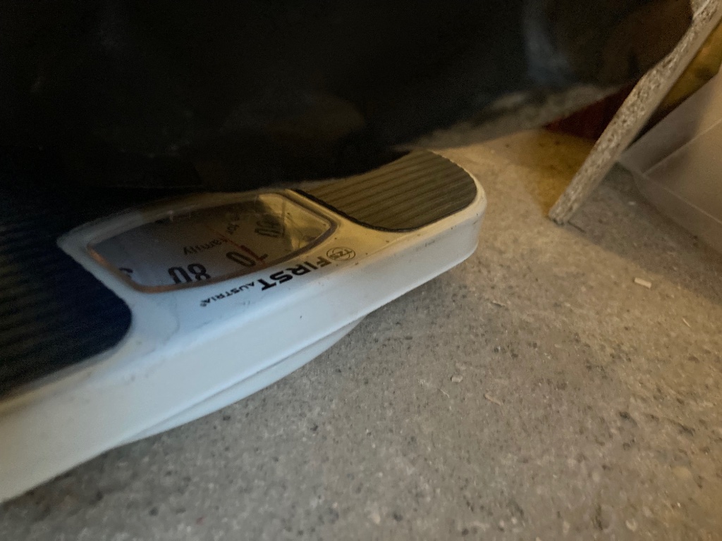 Ohne Gepäckträger, mit kleiner Bremse vorn, ohne die Scheinwerferhalterung samt Handyhalter, ohne Zündschloss, ohne Batterie und mit kurzem Auspuff wog sie damals noch knapp unter 130kg. Schon krass, wie sich der ganze Mumpitz aufsummiert…
