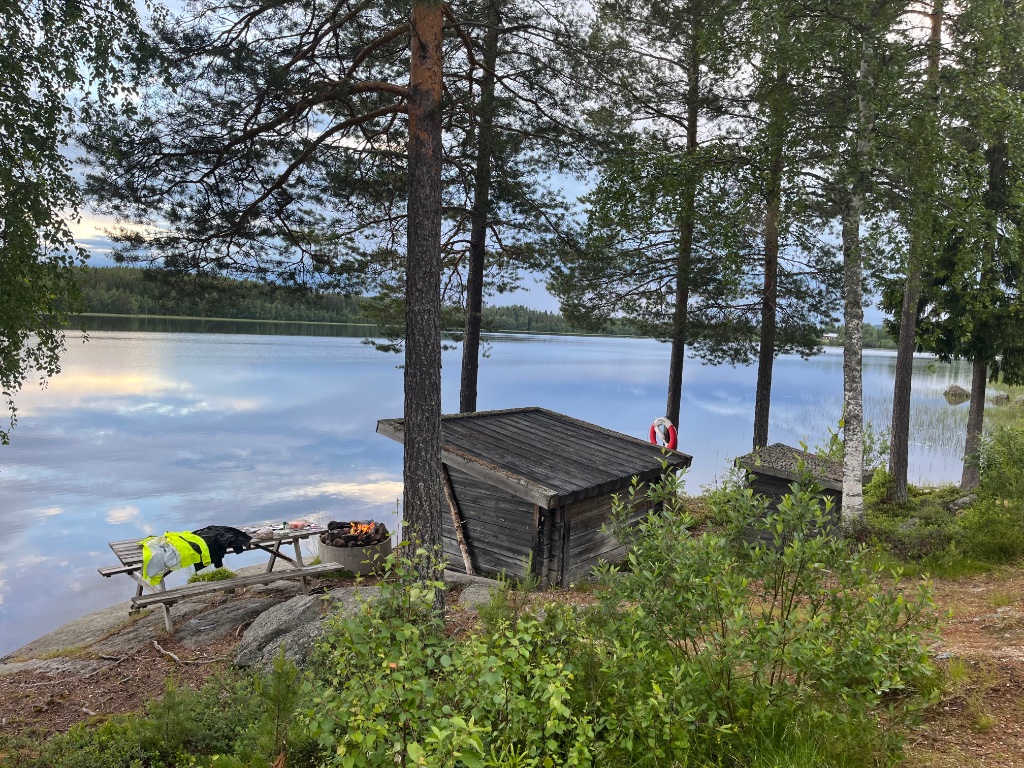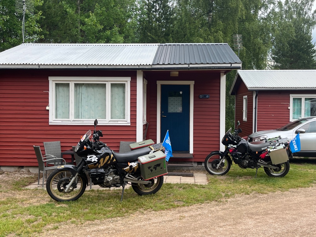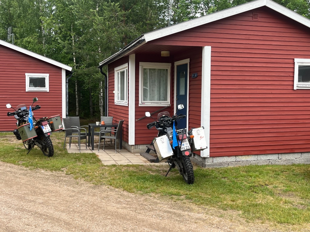 Haben trotz des widrigen Wetters heute Etappe 2 nach 435km abgeschlossen und sind jetzt in Torsby am Campingplatz in einer Hütte.