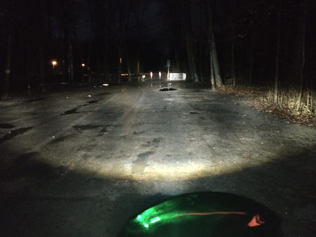 hier mal der KTM EXC LED Scheinwerfer mit ECE R50 Kennzahl 10 gestern Abend im Nieselregen..
