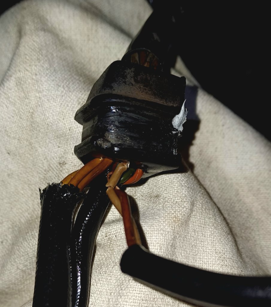 Das braune Kabel hat an dieser Stelle keinen Schutzüberzug und hatte schon eine Druckstelle
