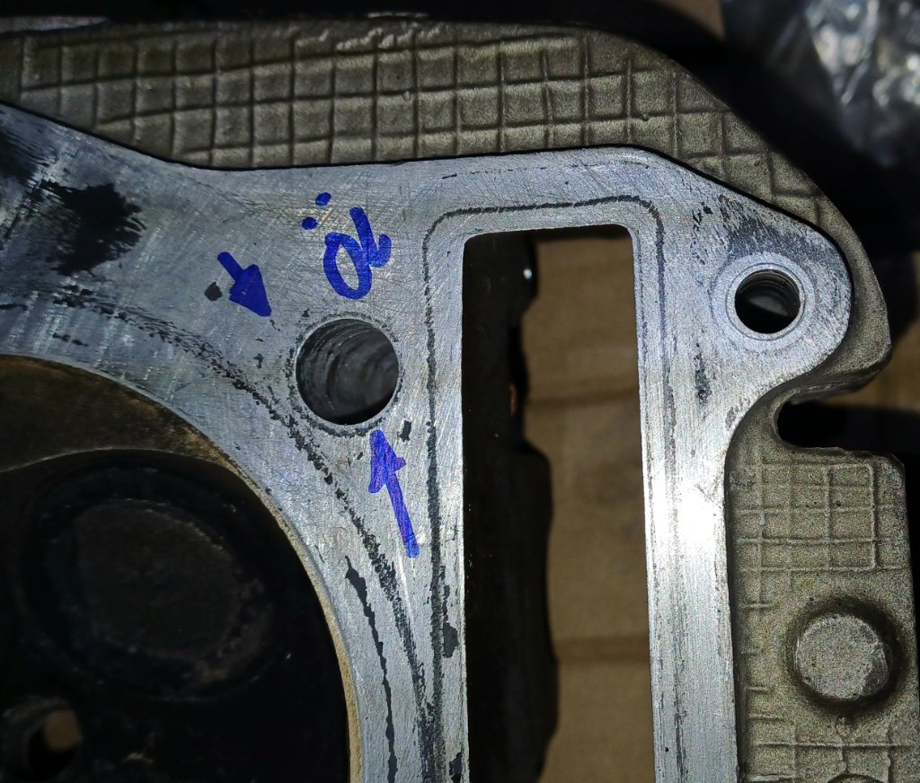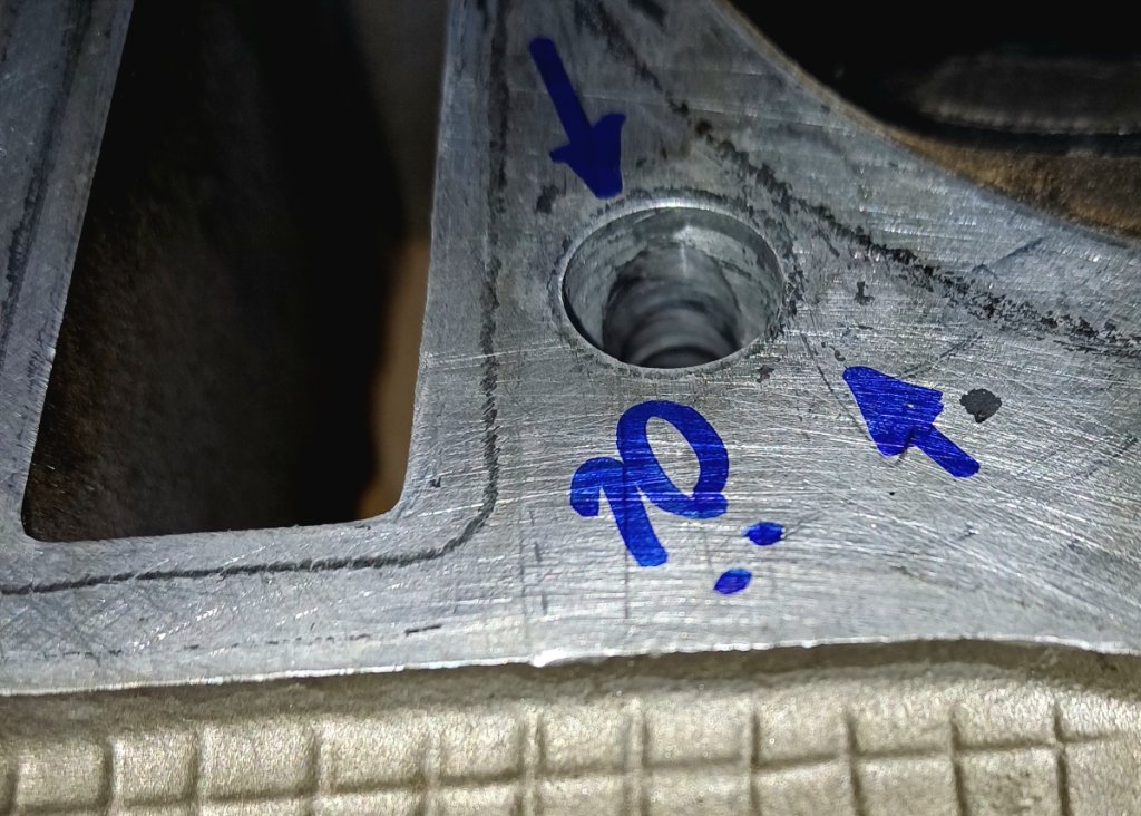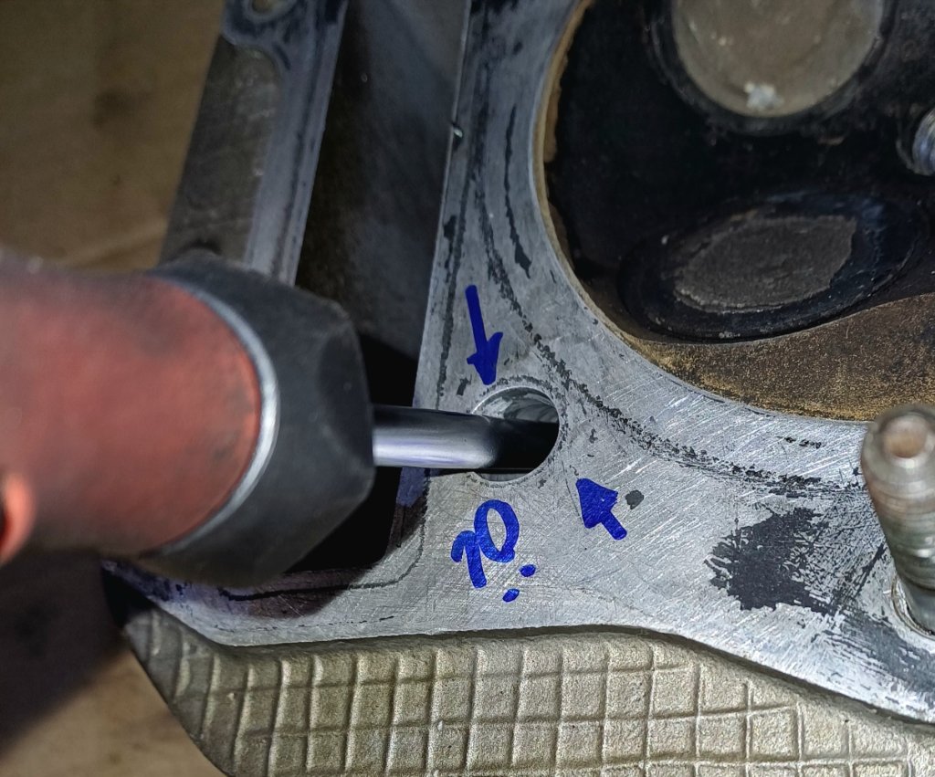 Diese Bohrung teilt sich in einen Kanal Richtung Nockenwelle:
