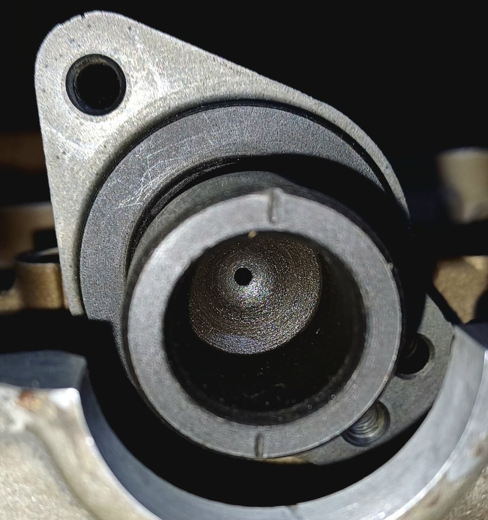 Die andere Seite der Nockenwelle hat nur eine kleine Öffnung um das Öl zu hindern leichter in den Kettenkasten abzulassen und eher die 2 Bohrungen der Nocken zu versorgen.