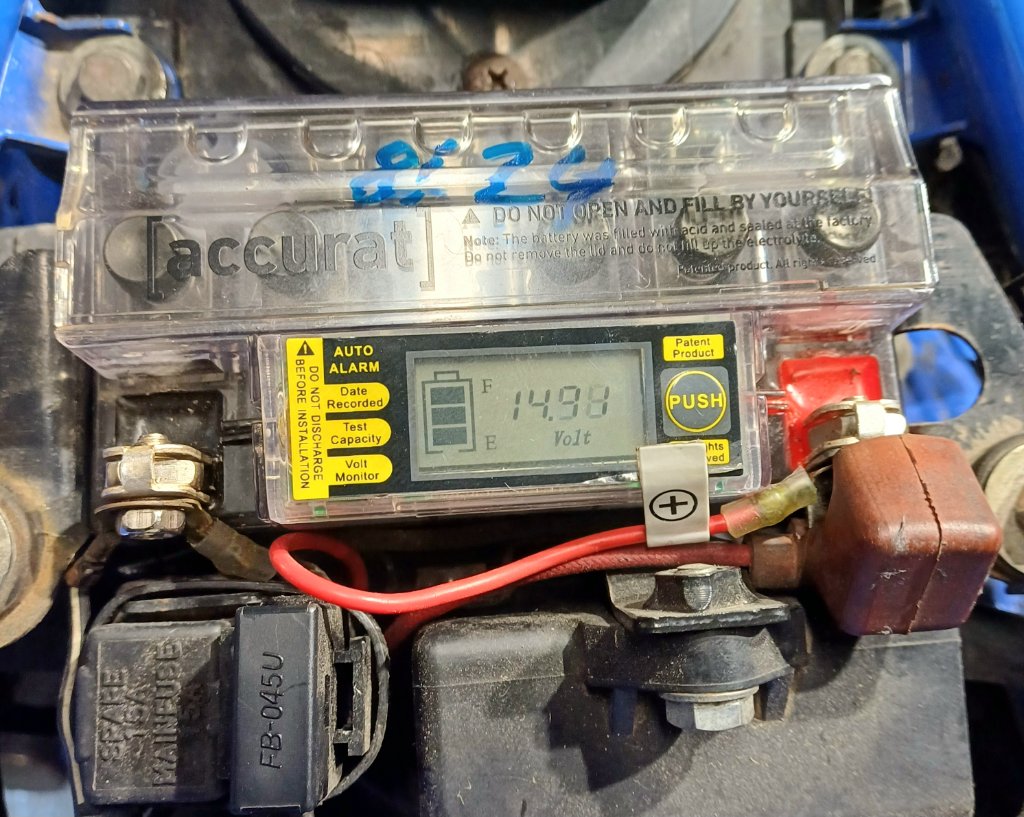 Hat dich prima mit dem großen Ladegerät der Tante Luise aufladen lasse.Tester sagt ok.12,8V